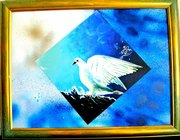 + de détailsColombe, au repos, plaque de polystyrène, cadre ancien rénové, formats A3, grands formats, prix moyens