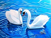 + de détailsCygnes, toiles animaux, tableaux, tableau original, peinture, acrylique, format 50X70 cm, plus de 100 €, mer, animaux, oiseaux, nature