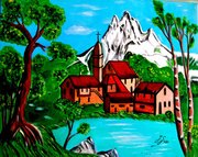 + de détailsPetit village de montagne, toiles paysages, tableaux, original sur toile, peinture, acrylique, format 40X50 cm, petits prix, prix moyens, montagnes, lac, nature,*