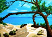 + de détailsPlage de rêve, toiles paysages, tableaux, original sur toile, peinture, acrylique, format 50X70 cm, paysages, mer, palmiers, nature, *